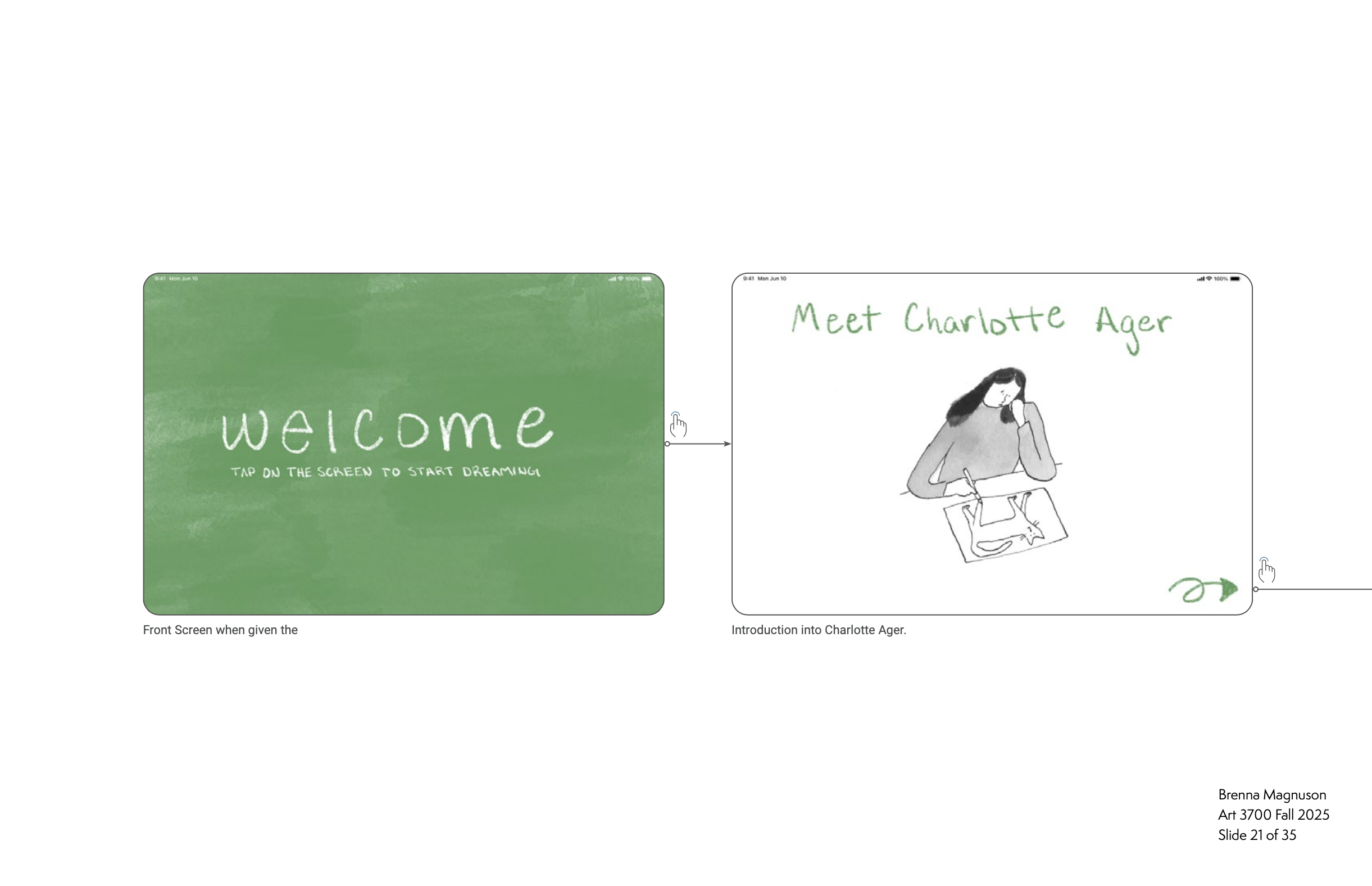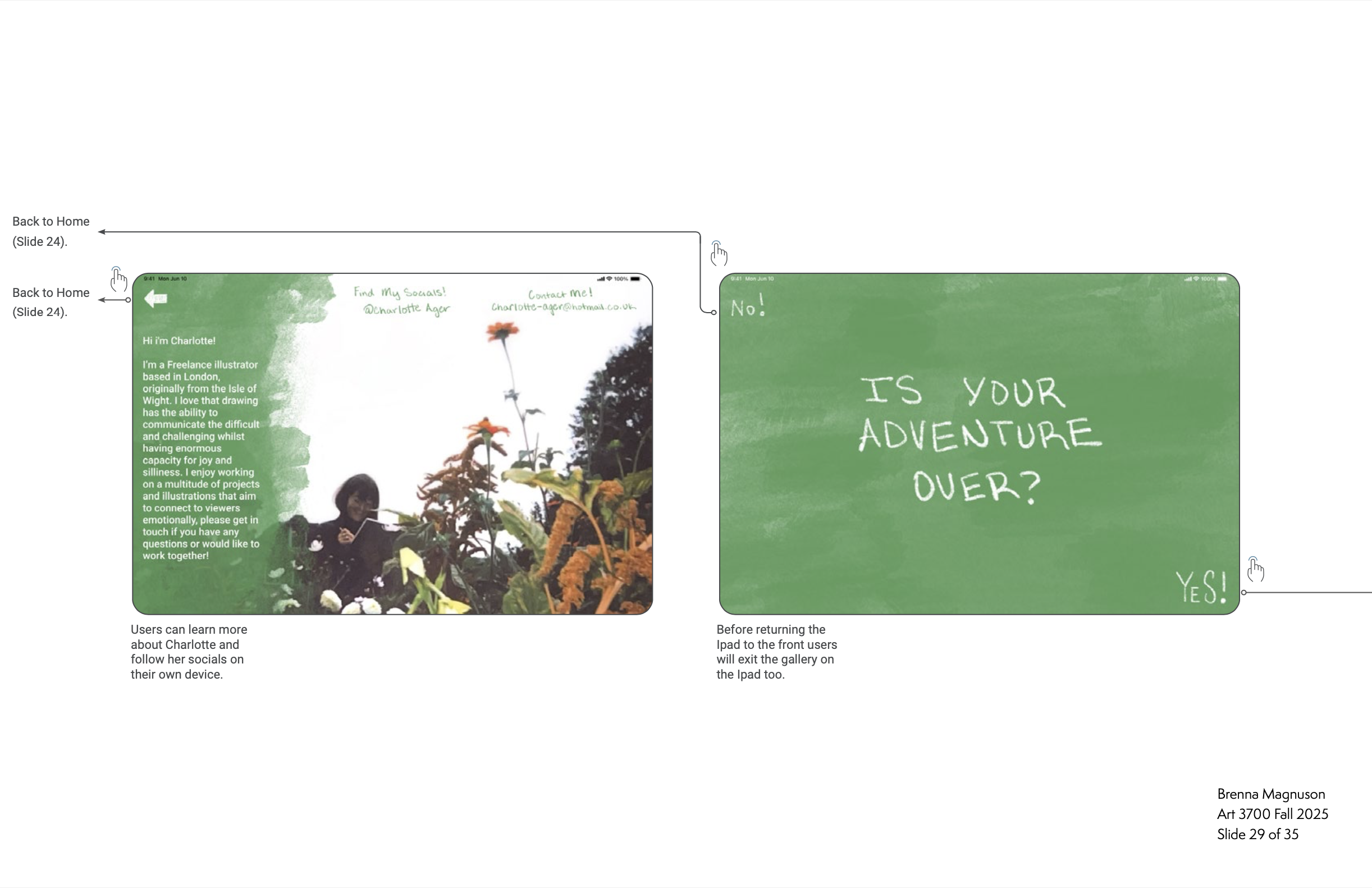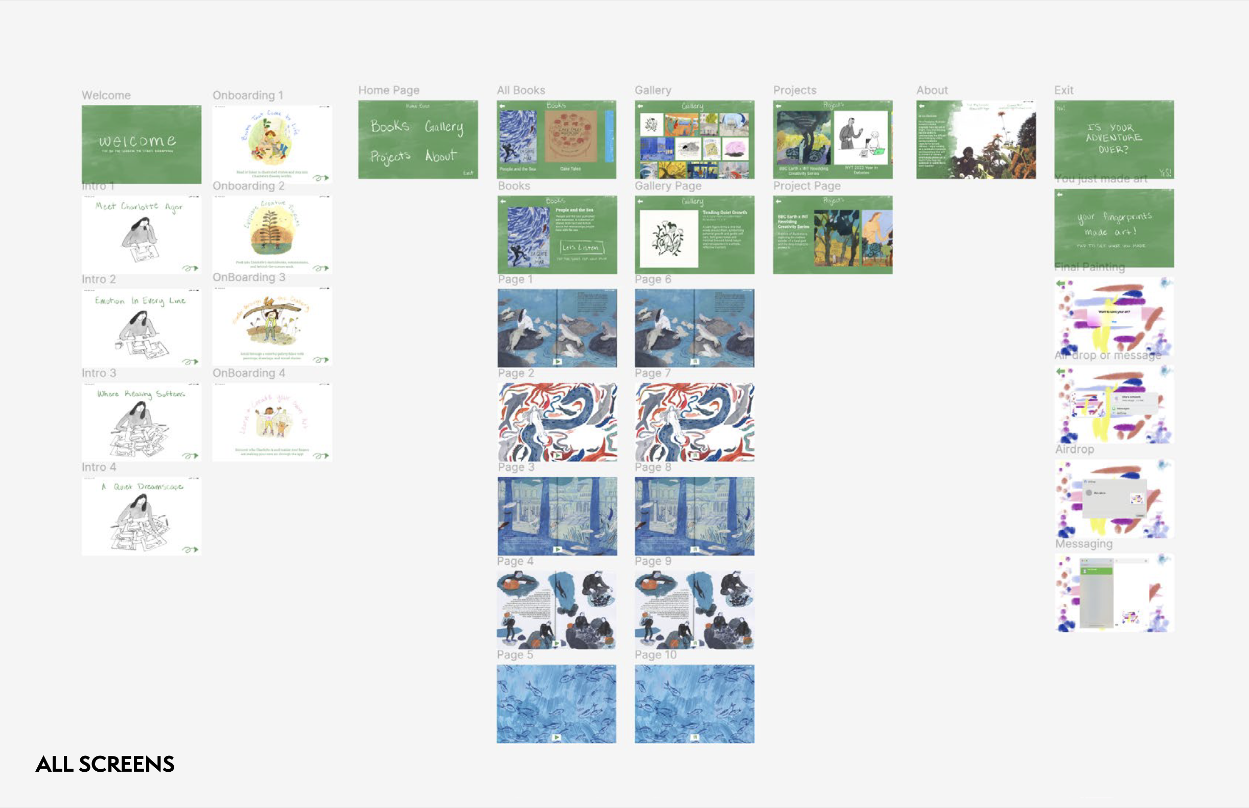 I designed an interactive exhibition app for the Charlotte Ager exhibition at the Victoria and Albert Museum. The app lets visitors explore her work through audio, interactive content, and a fingerprint-based art feature, reflecting themes of play and creativity. Designed in Figma and refined through user testing, the final experience is accessible, intuitive, and visually aligned with the artist’s style.
