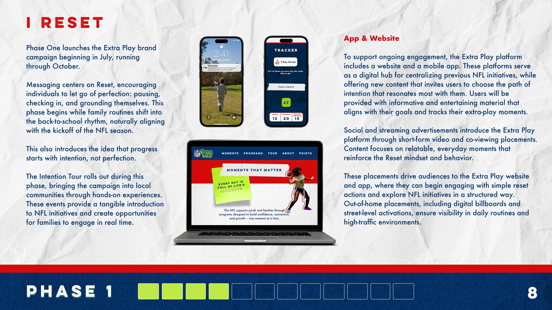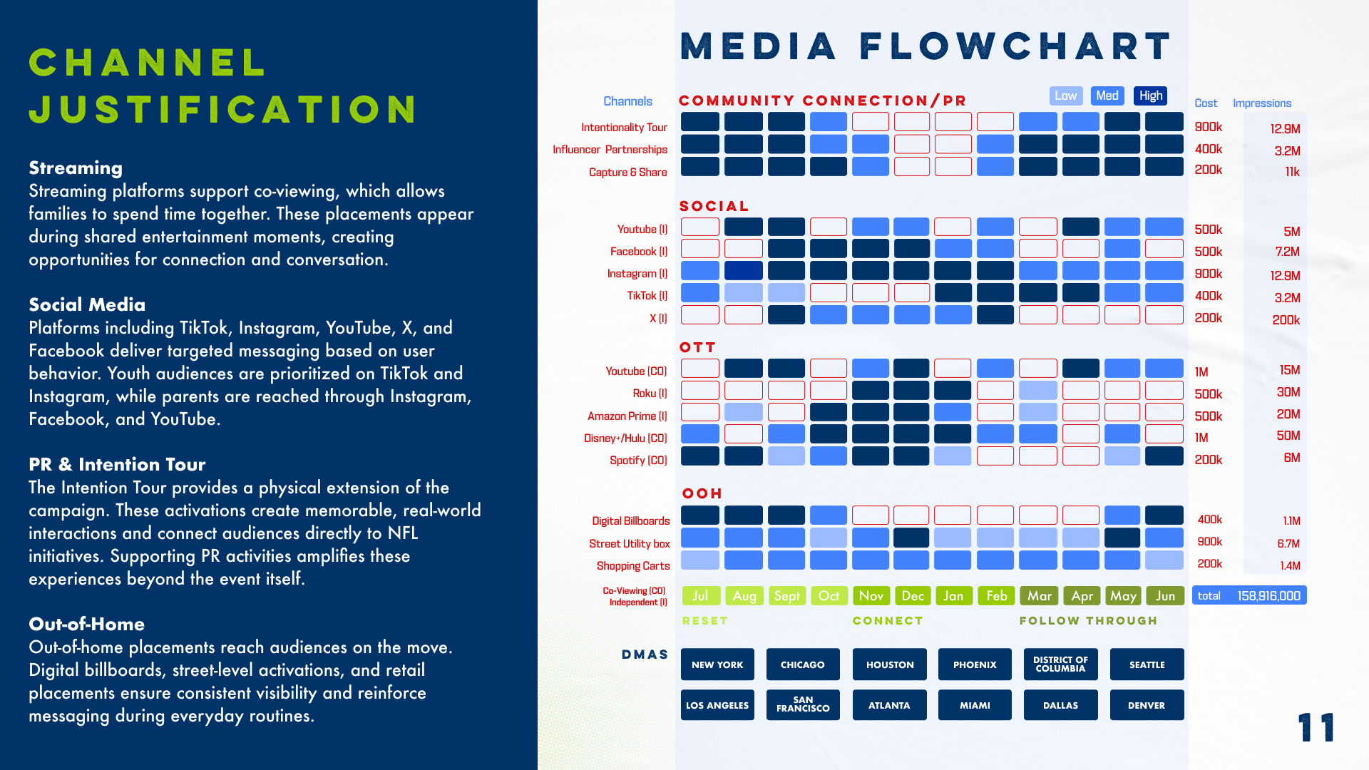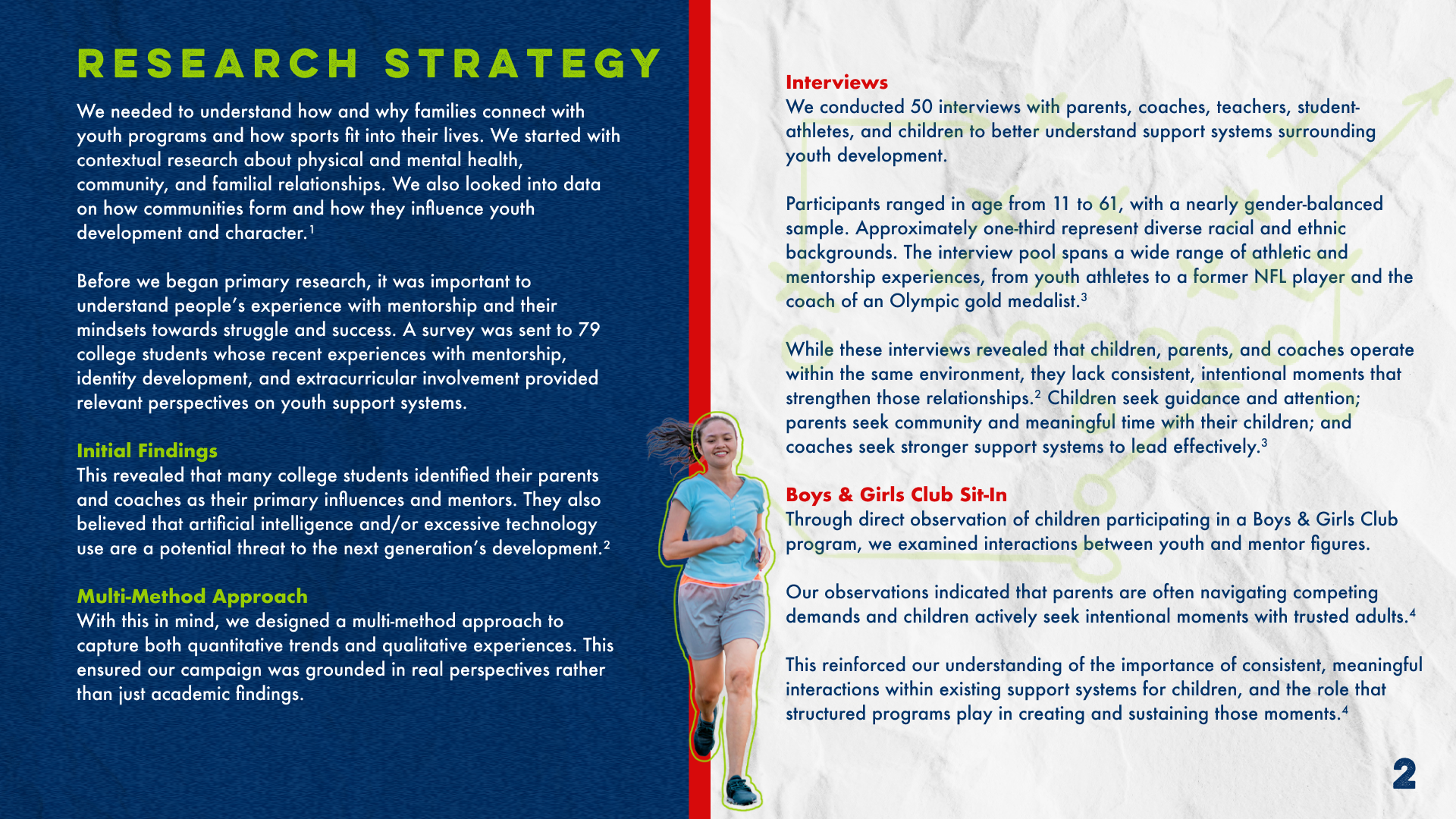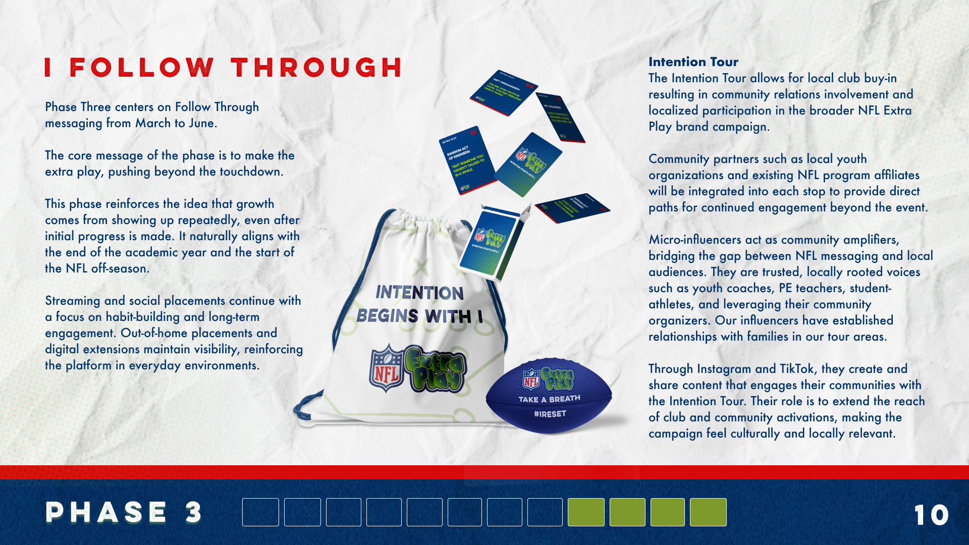 For this campaign, the 2026 NSAC competition asked to create a unifying brand for the NFL youth initiatives. I served as Creative Director, overseeing the copy, graphic design, and film teams to bring the campaign to life. I collaborated closely with the research, strategy, and media teams to ensure all elements were aligned and cohesive. After developing the plans book, we created and delivered a 20-minute presentation that fully brought the campaign to life. This year, we presented in Portland, Oregon, competing against six other schools as part of District 11.